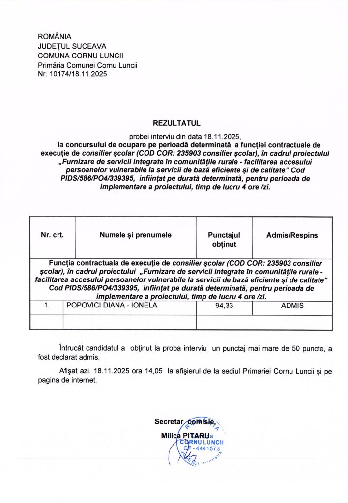 ANUNȚ CONCURS – ocupare post vacant de consilier școlar